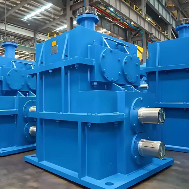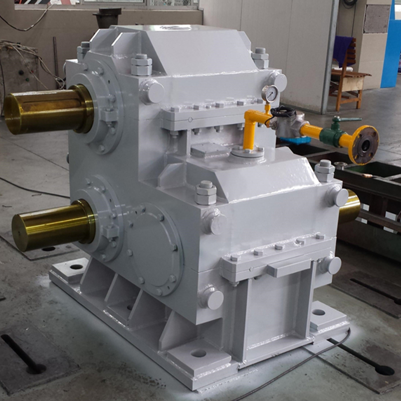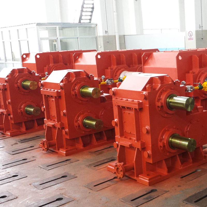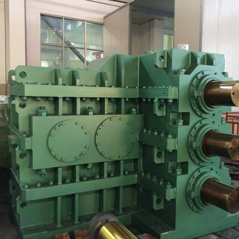 The Rolling Mill Reducer is a core transmission device in a steel rolling production line. Its main function is to convert the high speed of the electric motor into the low speed and high torque power required by the rolling mill rolls to achieve the rolling deformation of the metal billet. Unlike general industrial reducers, this equipment is specifically designed for the high impact loads, continuous operation, and harsh environment (high temperature, high dust) of steel rolling. Its gears are typically made of high-strength low-carbon alloy steel (such as 20CrMnTi) and undergo carburizing and quenching treatment, achieving a tooth surface hardness of HRC58-62, with significantly better wear resistance and fatigue strength than ordinary gears. Structurally, it often adopts a hardened gear surface and modular housing design. The housing is mostly a cast iron or cast steel welded structure, and stress relief treatment is used to ensure rigidity. Its core advantages lie in high torque density (achieving torque output in a compact space through multi-stage gear distribution), precise speed ratio control (transmission ratios ranging from 5:1 to thousands, adapting to different rolling speed requirements), and excellent environmental adaptability (protection level up to IP65, withstanding ambient temperatures from -40℃ to 45℃). Furthermore, the reducer's internal lubrication system uses circulating oil or long-life grease. Key components, such as eccentric sleeves, allow for fine-tuning of shaft positions to reduce clearance wear, ensuring the stability of the rolling process and extending equipment lifespan.